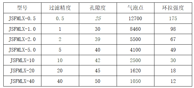 金屬粉末濾芯技術(shù)參數(shù)
