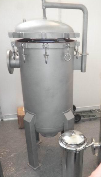 前置袋式過濾器的操作方法比較簡單,在使用時只需將廠家所需要細度等級的濾袋安裝在設備的濾筒內,檢查O型密封圈是否完好,然后旋緊濾筒蓋環形螺栓,即可投入工作。泵啟動后,過濾機上壓力表微微上升,初始壓力約0.05MPa左右,隨著使用時間的延長,缸內濾渣逐漸增多,當壓力達到0.4MPa時,應停機打開筒蓋,檢查濾機袋留渣情況,可更換濾袋繼續使用(濾袋通過清洗一般可重復使用)。過濾機壓力一般調在0.1-0.3MPa比較合適,可通過回流管路或泵上回流閥來調節,過濾壓力過高會損壞濾袋以及保護網,需格外注意。