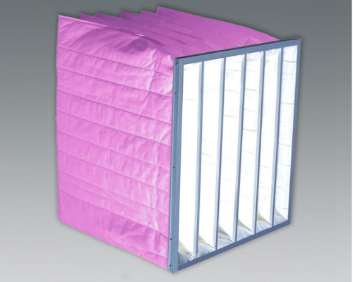 中效袋式過濾器是采用專用鋁型材或鍍鋅板框作為外框,濾袋由新型復合無紡布或微細玻璃纖維及進口合成纖維制成,整體結構呈遞增型。濾袋被切割呈若干個小呆,每個小袋呈V型結構。當空氣從袋口進入,濾袋遞增結構使得空氣可以均勻地覆蓋整個濾料層。